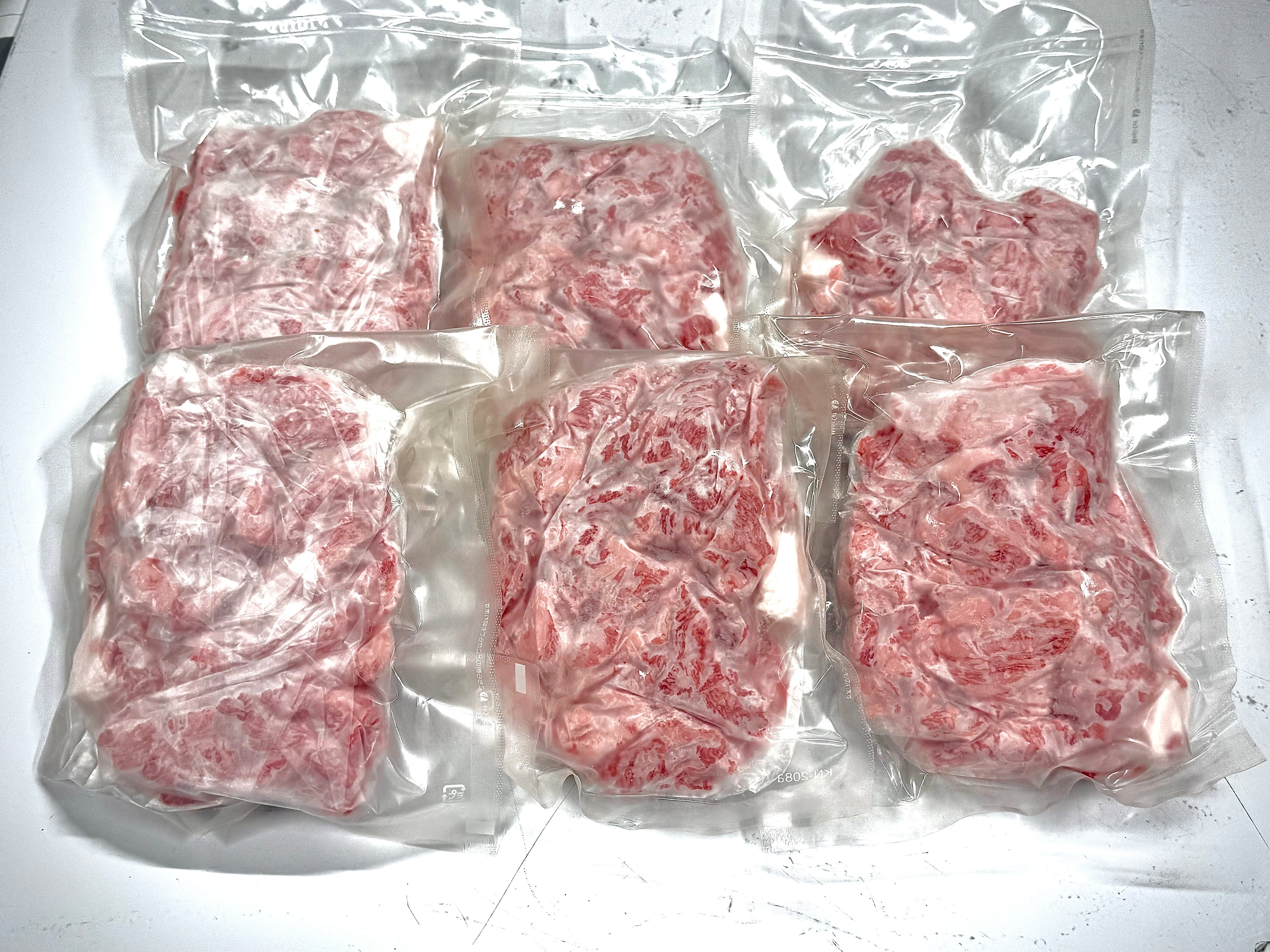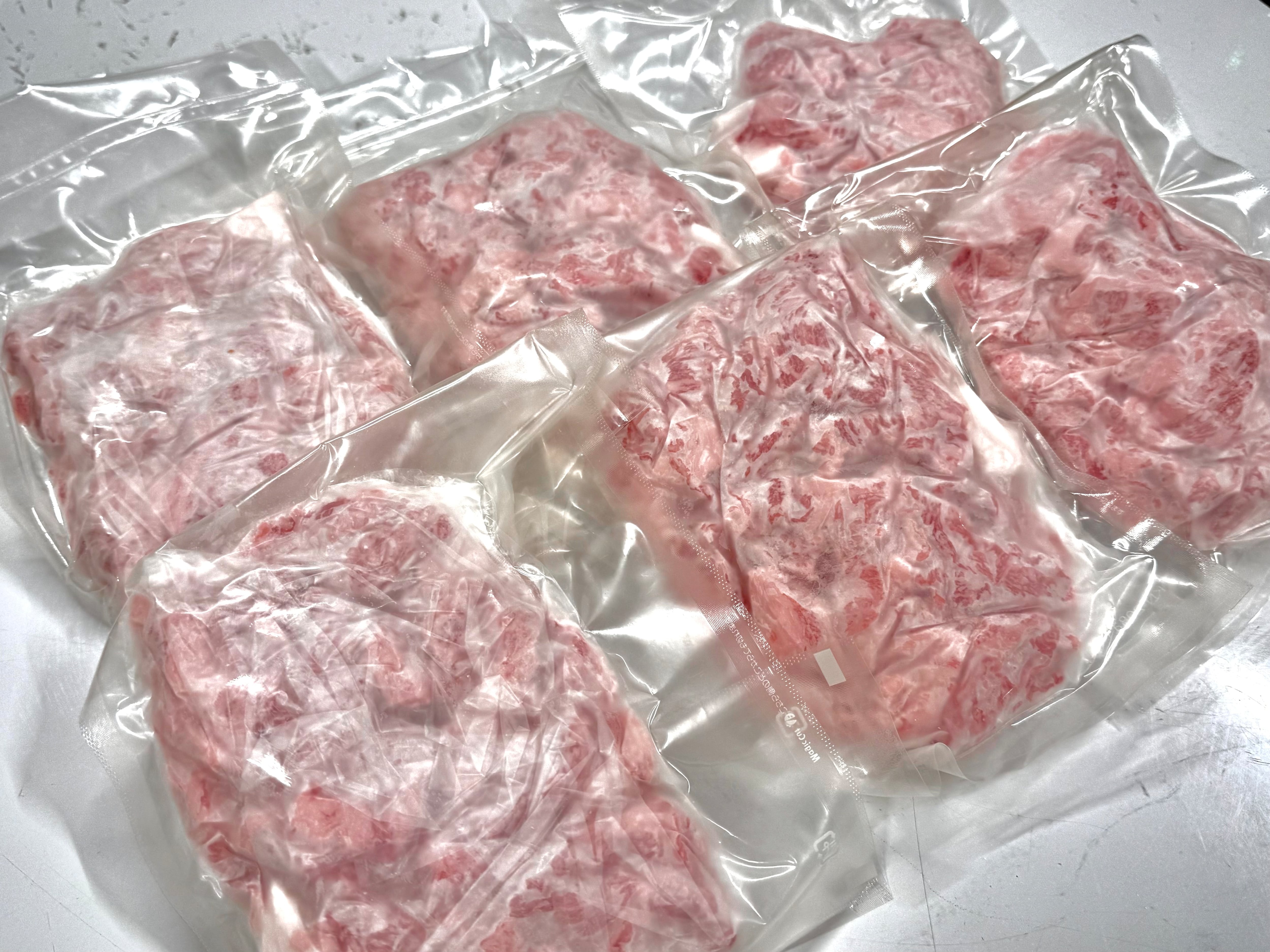 氷温熟成飛騨牛のコマ切れを普段使い用に200gの小分けにしました。ガスバリア袋に入っているので冷凍の嫌な臭いも移りません。袋にシートでくるんで入っているので極力ゴミが出ないしようとなっております。